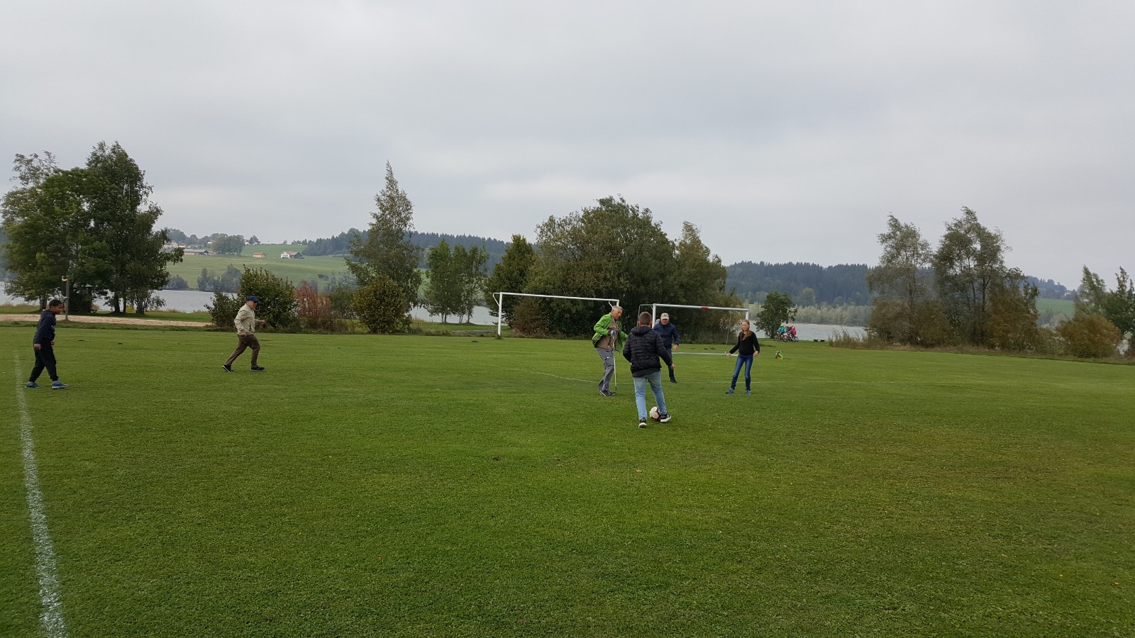 Dort probten wir ohne Stress, jedoch intensiv für unseren Ehrengottesdienst (14.10.) und den Gottesdienst an Totensonntag. Vier Proben von Freitagabend bis Sonntagmittag sind für uns eine gute Balance zwischen Musizieren und Freizeit. Da uns auch das Miteinander und die Gemeinschaft wichtig sind, spielten wir Fußball am nahegelegenen See und abends Gesellschaftsspiele miteinander.